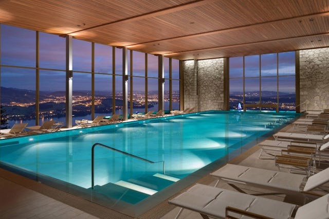 Situé directement au bord du lac Léman à Vevey, cet hôtel cinq étoiles historique invite à la détente luxueuse. Le spa «Puressens» propose une piscine intérieure panoramique, des soins exclusifs et un jacuzzi avec vue sur le lac, idéal pour profiter des rayons du soleil automnal. La durabilité est une priorité absolue, comme en témoignent les produits régionaux, les technologies à faible consommation d'énergie et les processus respectueux de l'environnement.