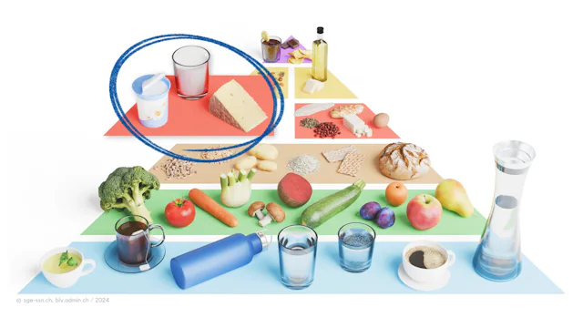 Les recommandations alimentaires* soulignent le rôle central du lait et des produits laitiers dans une alimentation équilibrée. Ces derniers fournissent du calcium, indispensable à la solidité des os et des dents, et contiennent de la vitamine D, qui favorise l’absorption du calcium. À cela s’ajoutent des vitamines B et l’iode, qui stimulent le métabolisme et jouent un rôle important pour la thyroïde. Les protéines de haute qualité contenues dans les produits laitiers favorisent en outre le développement musculaire et aident à maintenir le corps en forme.