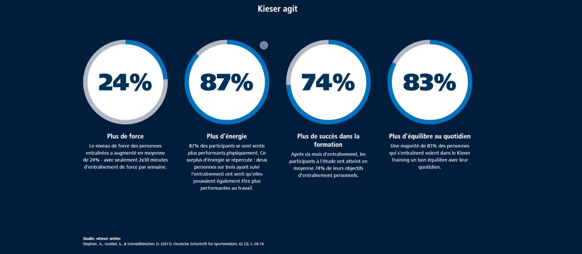 C'est ce que montre une étude menée par Kieser et accompagnée par un comité scientifique indépendant auprès de 531 participants. Six mois d'entraînement à raison de deux séances par semaine ont suffi à améliorer sensiblement la qualité de vie et les performances.